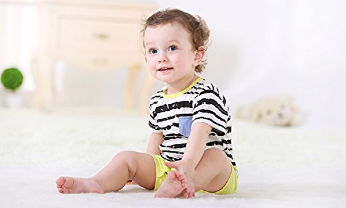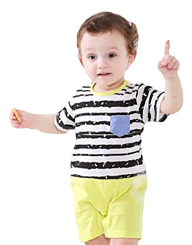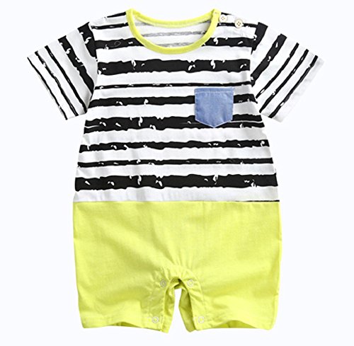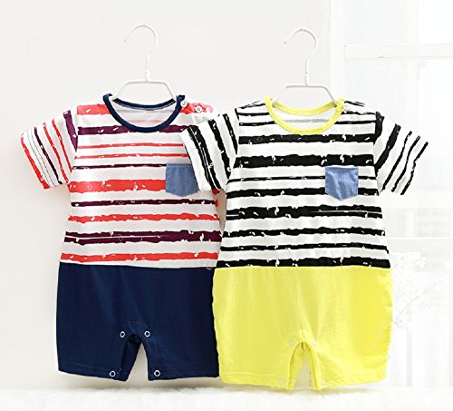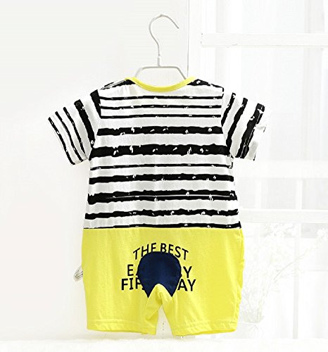 半袖 ロンパース 女の子 男の子 ベビー 73㎝ 80cm 黄色 紺色 夏 ボーダー (73cm, イエロー)