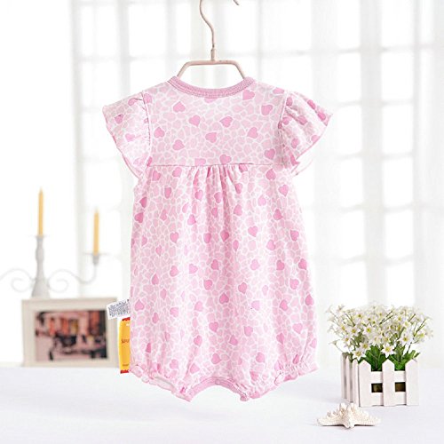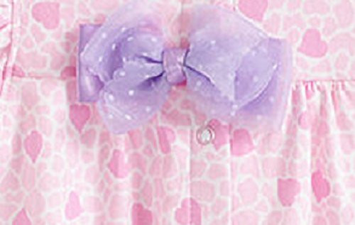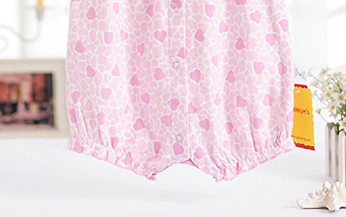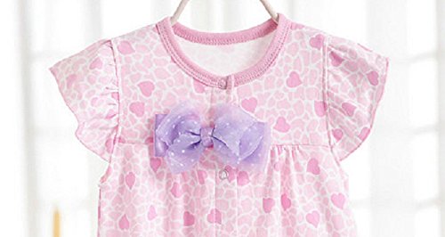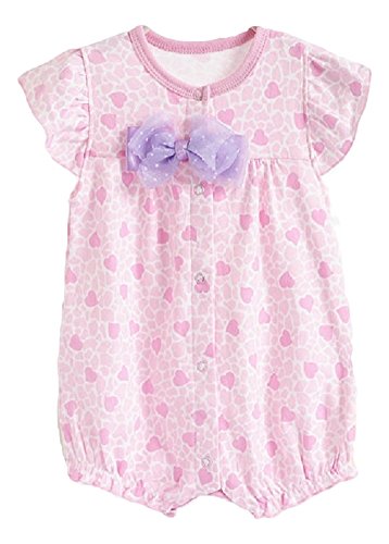 リボン付 ロンパース 女の子 ベビー 80cm クマ 小鳥 ハートA ハートB 半袖 可愛い (ハートA)