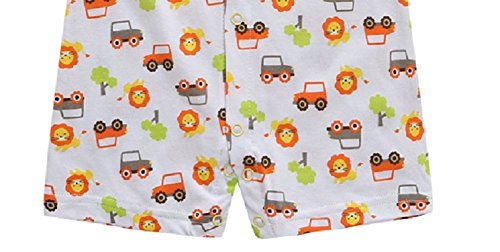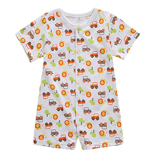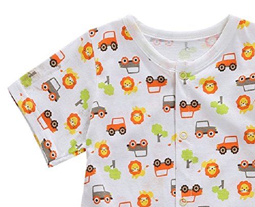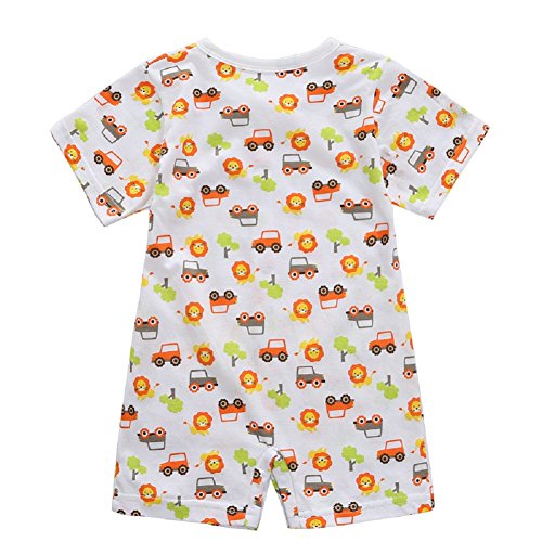 綿素材 前開き ロンパース 男の子 新生児 赤ちゃん ベビー 59㎝ アニマル柄 カエル柄 クルマ柄 ジェット機柄 夏用 通気性 (クルマ柄)