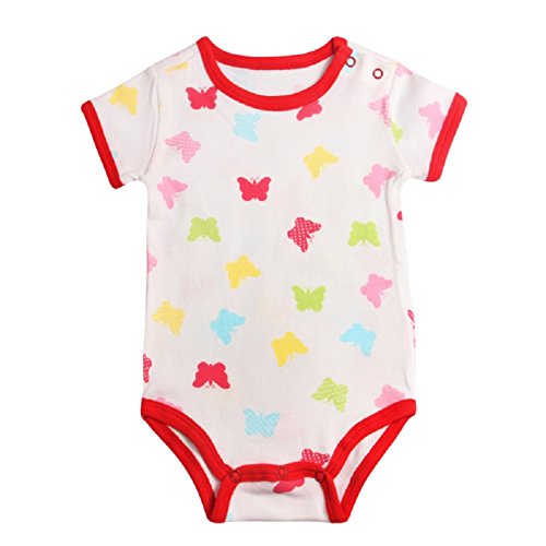 半袖 ボタン付 ボディオール ロンパース 女の子 ベビー 赤ちゃん 80㎝ ウシ柄 ヒョウ柄 チョウチョ柄 リボン柄 可愛い カバーオール 夏服 (チョウチョ柄)