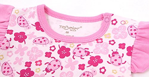 【MINI MAM】 袖無 ボタン付 綿 ロンパース 女の子 ベビー 赤ちゃん 80㎝ 90㎝ 桃色 紫色 半袖 カバーオール 夏服 (80㎝, ピンク)