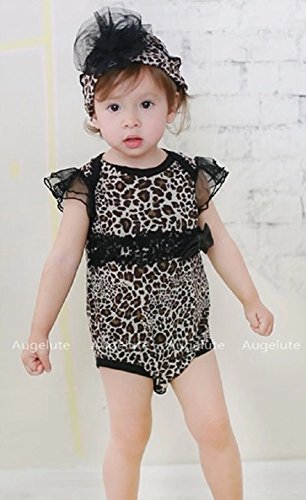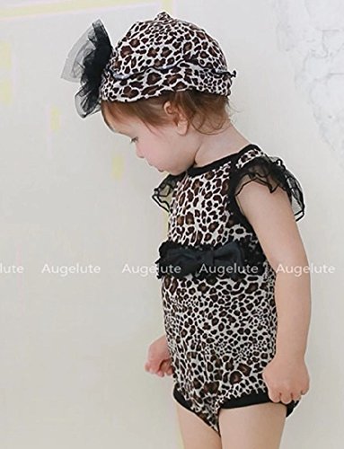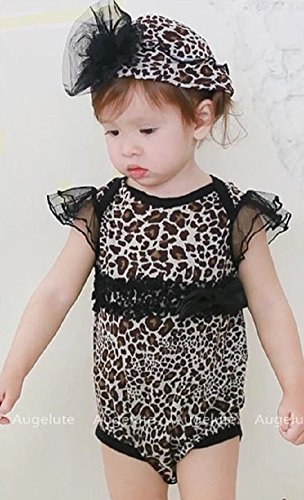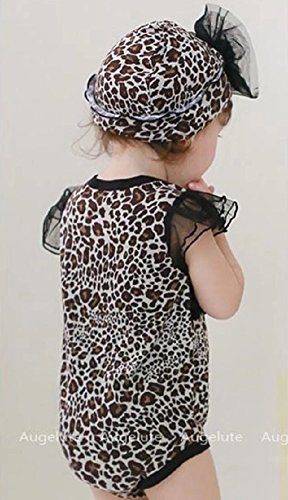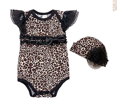 豹柄 ゼブラ柄 リボン ロンパース 女の子 ベビー 赤ちゃん 73㎝ 80㎝ 茶色 桃色 帽子 セット物 フリル (80㎝, ブラウン)