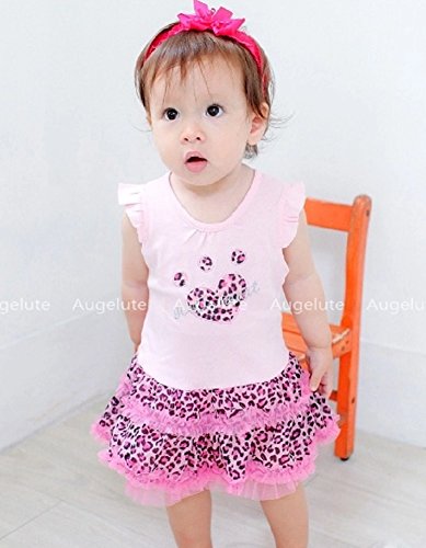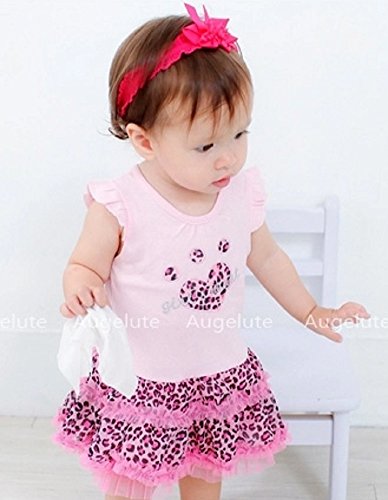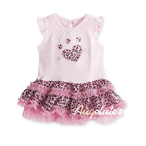 豹柄 花柄 フリル ロンパース 女の子 赤ちゃん ベビー 80㎝ 黒 白 桃色 青 半袖 夏服 スカート (ピンク)