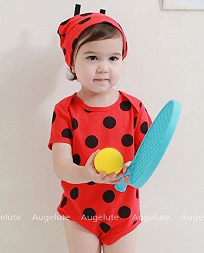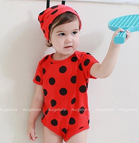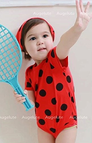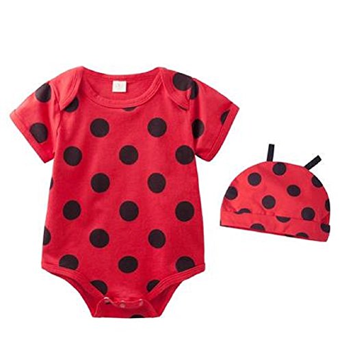 半袖 アニマル柄 綿 ロンパース 女の子 男の子 男女兼用 ベビー 赤ちゃん 80㎝ てんとう虫柄 豹柄 ジラフ柄 ゼブラ柄 着ぐるみ 半袖 カバーオール (てんとう虫柄)