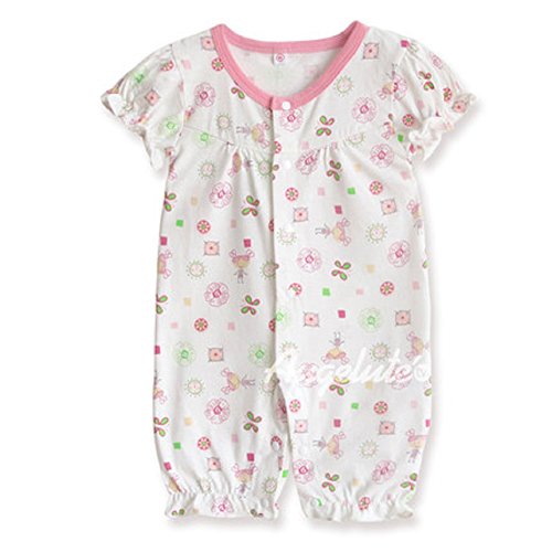 半袖 総柄 綿 ロンパース 男の子 女の子 赤ちゃん ベビー 80㎝ 夏服 カバーオール つなぎ (ピンク)