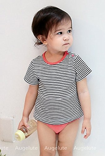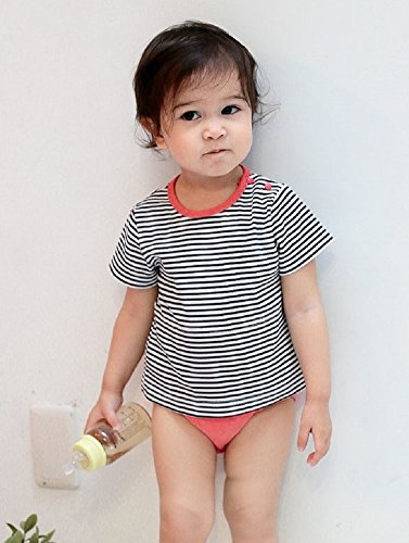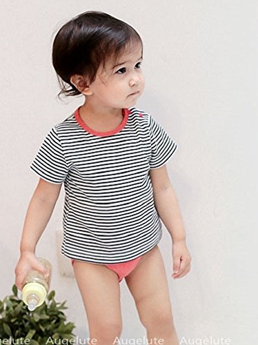 【MINI MAM】 ボーダー カジュアル 見せかけ ボディスーツ 女の子 男の子 ベビー 赤ちゃん 男女兼用 80㎝ 紺色 赤 灰色 トップス 半袖 ロンパース (ネイビー)