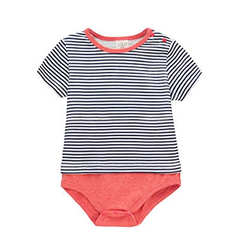 【MINI MAM】 ボーダー カジュアル 見せかけ ボディスーツ 女の子 男の子 ベビー 赤ちゃん 男女兼用 80㎝ 紺色 赤 灰色 トップス 半袖 ロンパース