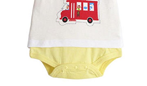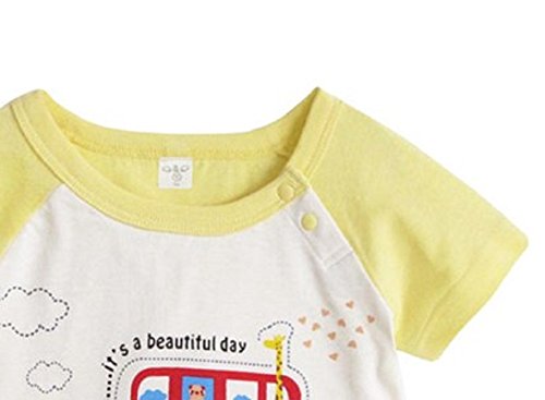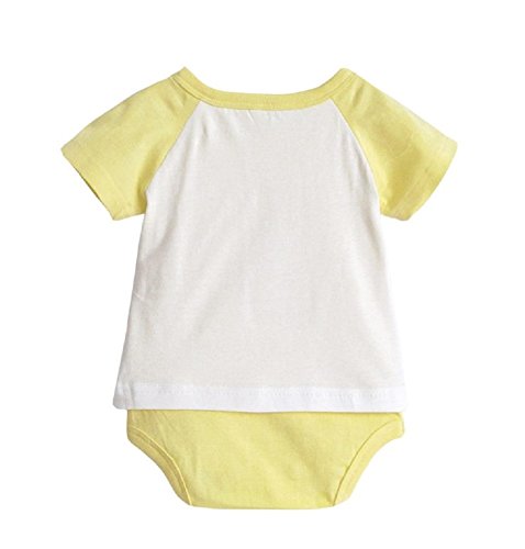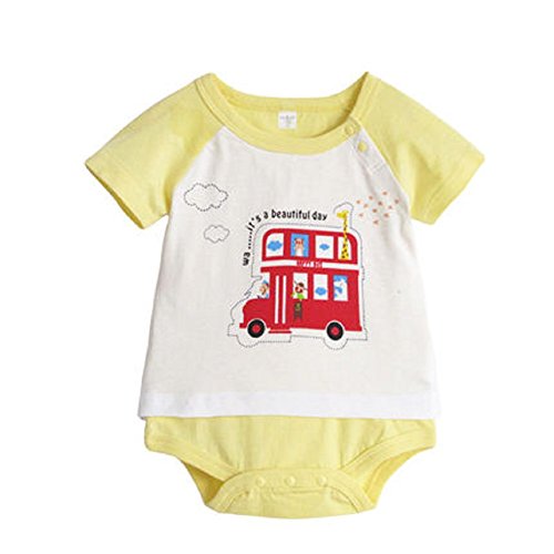 【MINI MAM】 綿 半袖 見せかけ ロンパース 女の子 男の子 男女兼用 ベビー 赤ちゃん 80㎝ 桃色 緑色 黄色 青 夏服 カバーオール 夏服 (イエロー)