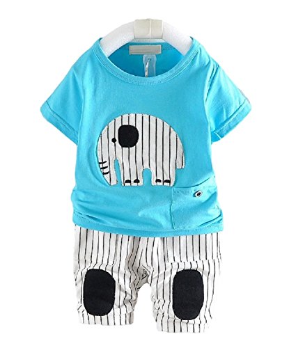 半袖 綿素材 ストライプ柄 セットアップ 80㎝ 男の子 女の子 ベビー 男女兼用 80㎝ 黄色 水色 橙色 上下セット 夏服 カジュアル (ライトブルー)