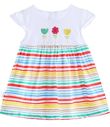 Aライン ワンピース 女の子 ベビー 73㎝ 花柄A 花柄B 苺柄 ボーダー柄 春夏 スカート (ボーダー柄)