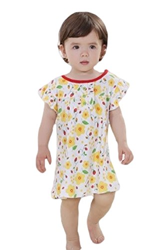 フリル 半袖 ワンピース 女の子 赤ちゃん ベビー 90㎝ さくらんぼ柄 苺柄 お花柄 てんとう虫柄 スカート 夏 フレア (お花柄)