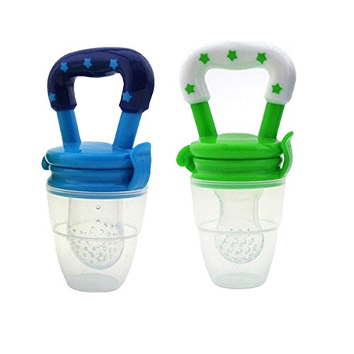 MIOIM 可愛い 栄養 野菜 果物 咬み袋 赤ちゃん用 おしゃぶり フードグレード シリコン製 キャップ付き 0-3ヶ月用 グリーン+ブルー