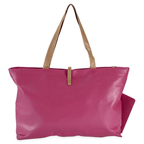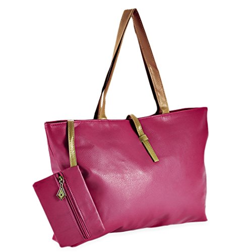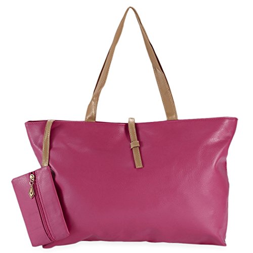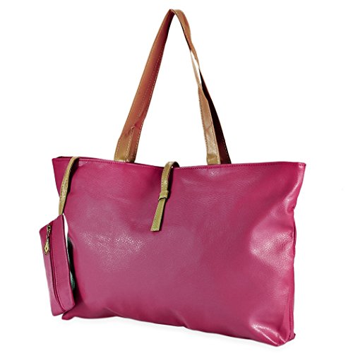 mioim トートバッグ レディース ハンドバッグ PUレザー 柔らかめ 折りたたみ 大容量 軽量 防水 撥水 コイン入れ 財布 2点セット (ホットピンク)