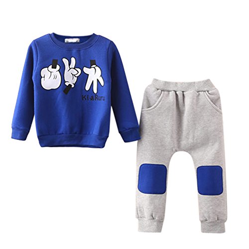 MIOIM 子供服 じゃんけん 上下セット ボーイズ 男の子 クール かっこいい ベビー服 冷房対策 チャコール 長袖 長ズボン 2セット 100 110 120 130 140