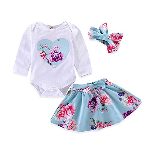 MIOIM ベビー服 女の子 かわい ロンパース 花柄 チュチュスカート ヘアバンド付き 3セット 子供服 夏 秋 新生児 ピアノ発表会 娘の日 出産お祝い 0-18ヶ月 (80CM)
