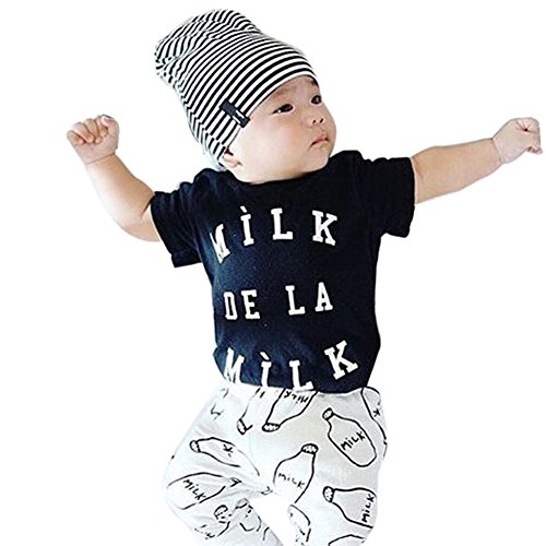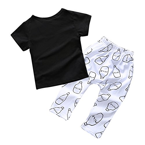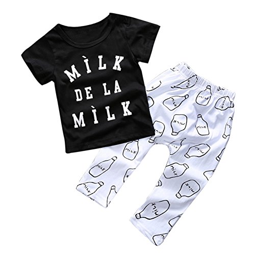 MIOIM ベビー 服 夏 シャツ ロングパンツ milk ミルク 上下セット 涼しい 綿 子供 女の子 男の子 ブラック 白 かっこいい かわいい 70 80 90 100 110 cm