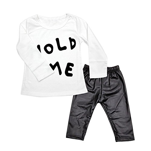 MIOIM ベビー キッズ ズボン ロングパンツ シャツ 長袖 女の子 男の子 可愛い 男女兼用 上下セット子供服 黒 白 綿 シャツ PUレザー ズボン