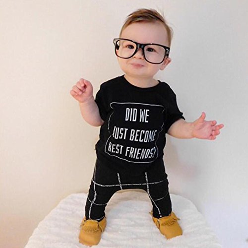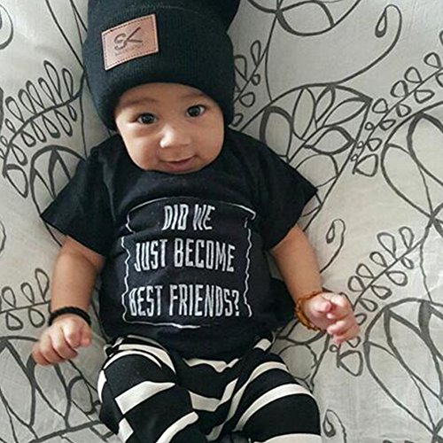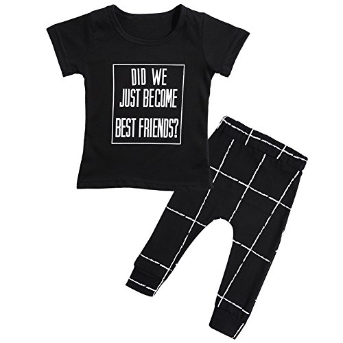 MIOIM® DID WE JUST BECOME BEST FRIENDS 英字 半袖 Tシャツ & パンツ 上下 セット アップ 子供 ベビー 服 男の子 ブラック