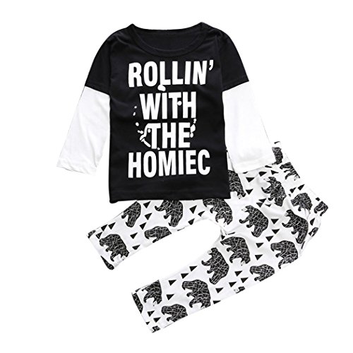MIOIM 英字 ロゴ プリント 長袖 Tシャツ & パンツ 上下 セット アップ 子供 ベビー 服 男の子 女の子 男女兼用 ブラック 黒 白 (100CM, 写真色)
