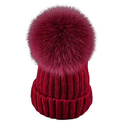 MIOIM® ニット帽子 キッズ 子供用 ファー付き ポンポン 冬 シンプル プレゼント 折り返し 多色選択 無地 純色 厚手 キュート