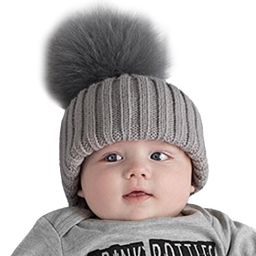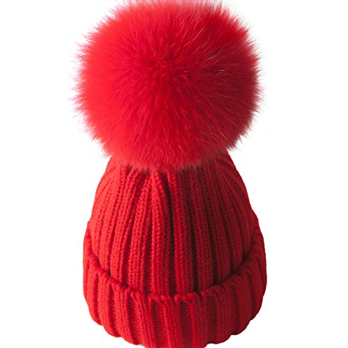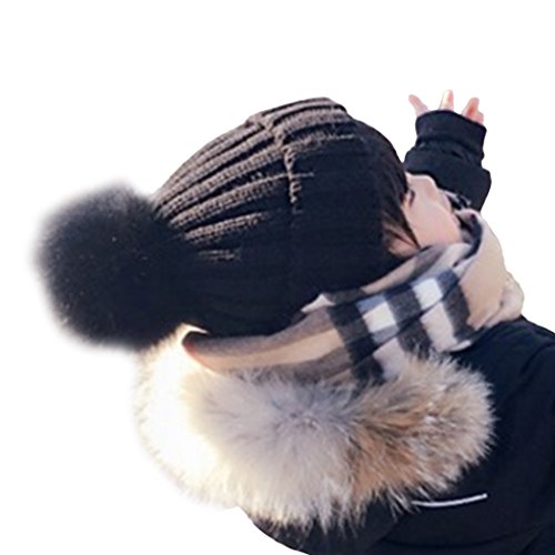 MIOIM ニット帽 キッズ ニットキャップ 男の子 女の子 フェイク ファー付き ポンポン 毛糸帽 折り返し 無地 ベビー 帽子
