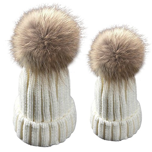 MIOIM® ニット帽子 親子 大人と子供 帽子 2点セット 無地 カジュアル ポンポン フリーサイズ 5色 多色選択 厚手 保温防寒