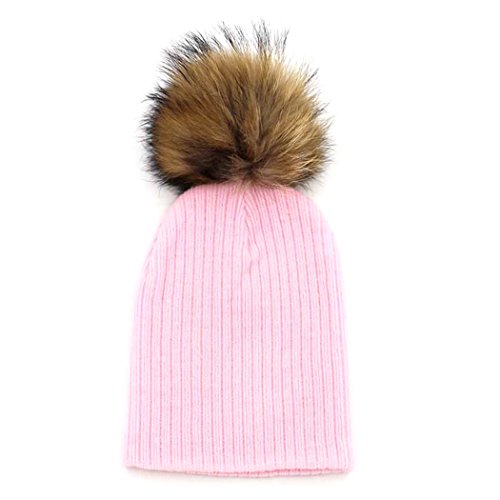 MIOIM® キッズ 帽子 ポンポン付き 防寒 暖かい ニット 編み込み 多色選択 無地 純色 厚手 ベビー