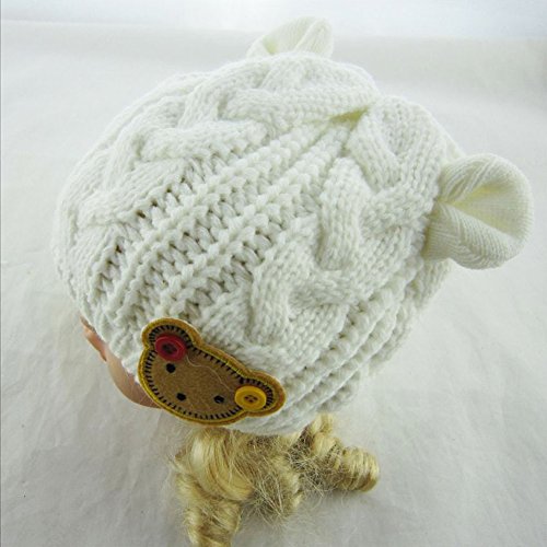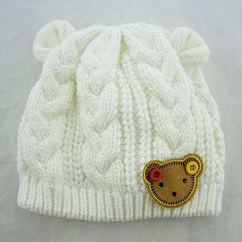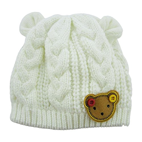 MIOIM®秋冬 防寒 子供 ベビー キッズ ニットキャップ 帽子 可愛い 耳付き 熊ワッペン付き 4色