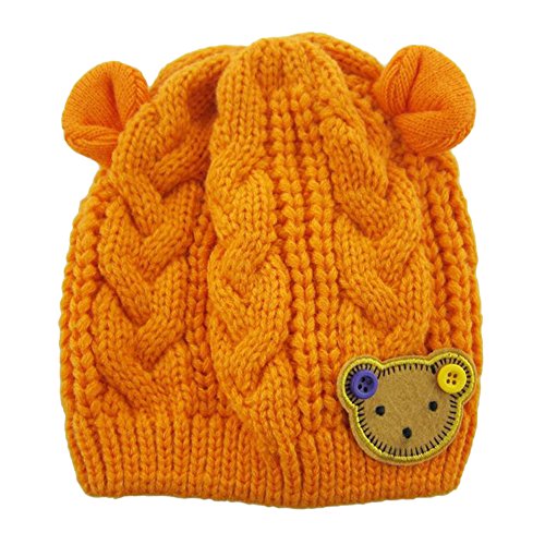MIOIM®秋冬 防寒 子供 ベビー キッズ ニットキャップ 帽子 可愛い 耳付き 熊ワッペン付き 4色