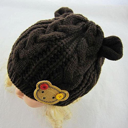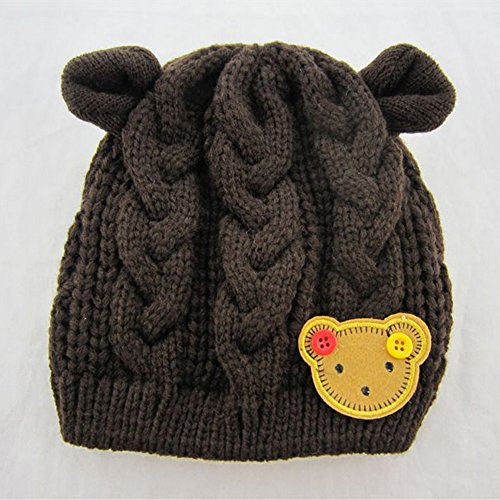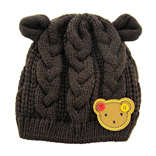 MIOIM®秋冬 防寒 子供 ベビー キッズ ニットキャップ 帽子 可愛い 耳付き 熊ワッペン付き 4色