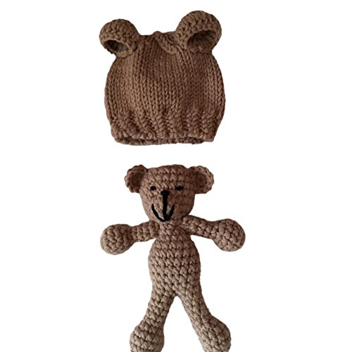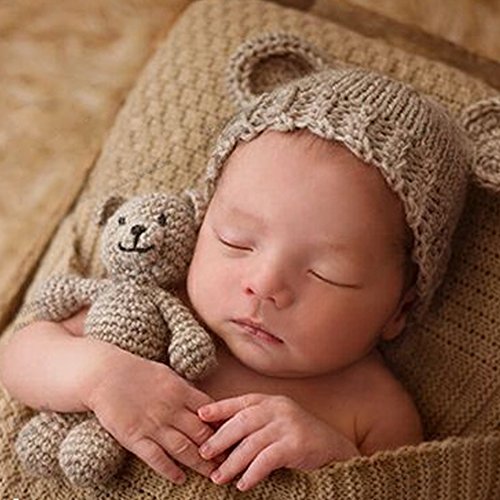 MIOIM® 特別なニット帽子と熊さんおもちゃのセット ニット帽 可愛い 手編み 毛糸 ニットキャップ 子供 赤ちゃん キッズ 帽子 男女児 秋冬 防寒 耳あて 暖かい 撮影