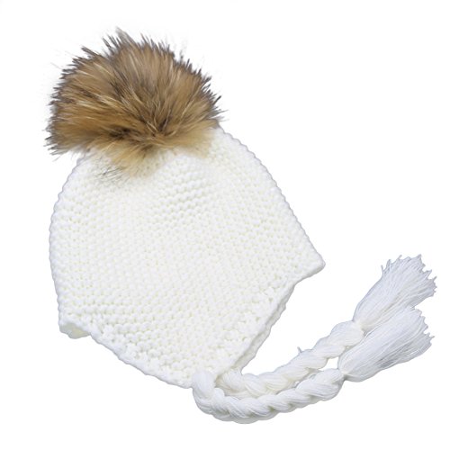 - デザインが斬新の成人のボンボン付きニット粗毛糸帽です。