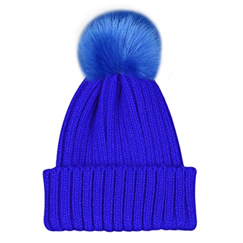 MIOIM® 子供用 キッズ ニット帽 ポンポン フリーサイズ キャンディカラー ボンボン付き 48~54cm可用 秋冬 厚手 防寒