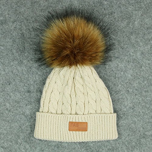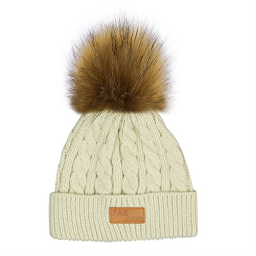 MIOIM キッズ ニット帽 ポンポン ニットキャップ フェイク ファー 厚手 防寒 ベビー ビーニー