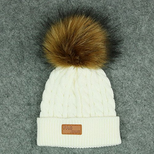 MIOIM キッズ ニット帽 ポンポン ニットキャップ フェイク ファー 厚手 防寒 ベビー ビーニー