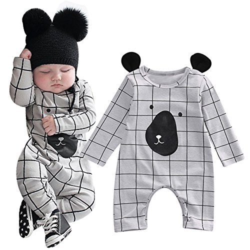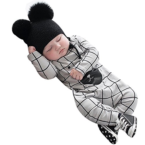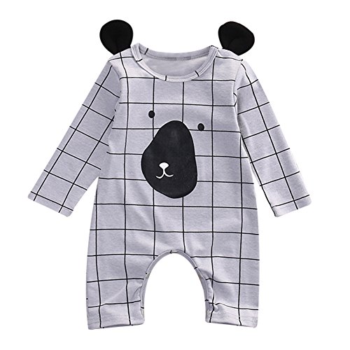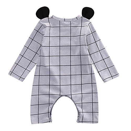 MIOIM® 秋冬 かっこいい ベビー服 チェック 耳付き 長袖 ロンパース ボディスーツ 連体服 肌着 カバーオール 女の子 男の子 子供服 キッズ