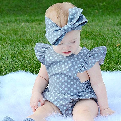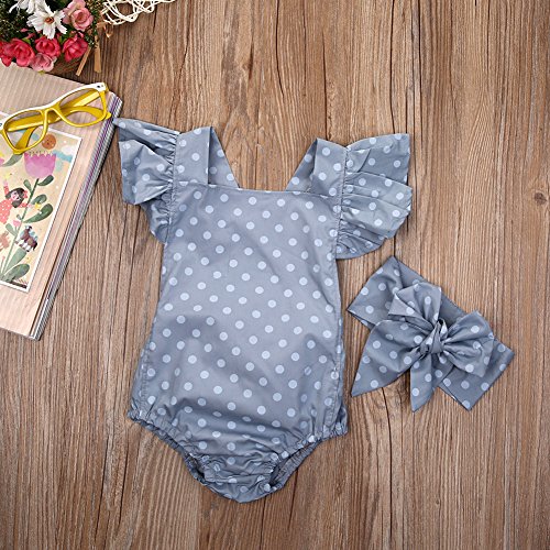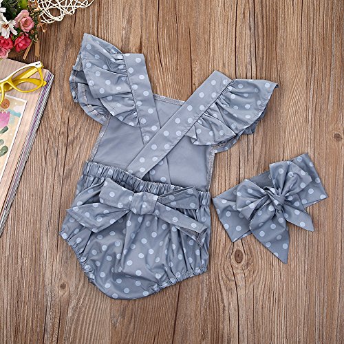 MIOIM ベビー服 ベビー ロンパース リボン付き ボディスーツ グレードット Tシャツ カバーオール ベビー服 女の子