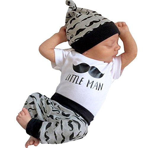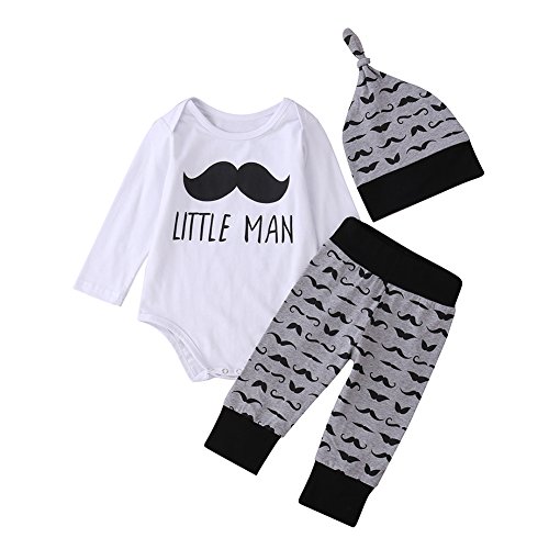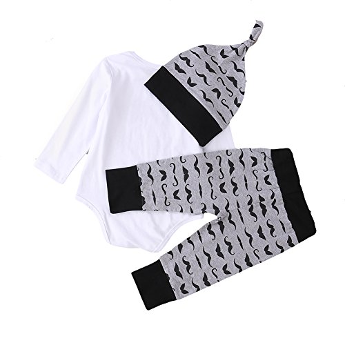 MIOIM® ベビー ロンパース キッズ 赤ちゃん 肌着 ボディスーツ カバーオール 英字 髭柄 帽子付き 帽子*ロンパース&ズボン 3点 セット 連体服