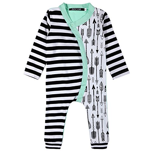 MIOIM ベビー服 かわいい 矢印柄 ロンパース 長袖 キッズ 男の子 女の子 ボーダー柄 Tシャツ 男女兼用 Tシャツパンツ カバーオール