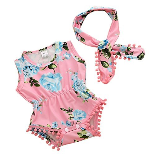 スタイル: Babyかわいい赤ちゃんPenoyフラワープリントポンポンタッセルワンジーロンパースかわいいヘッドバンド