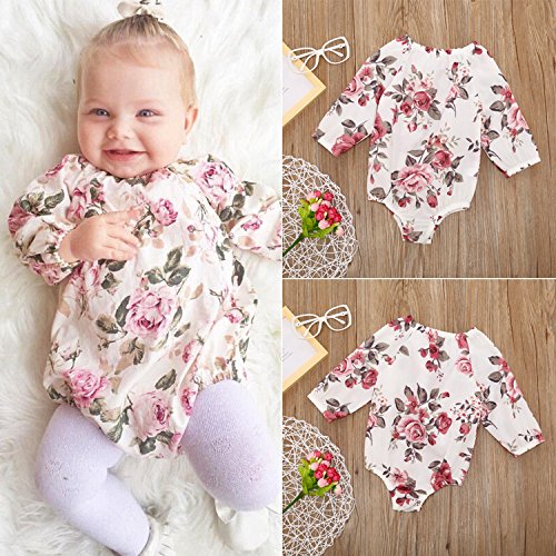 MIOIM ベビー服 赤ちゃん 女の子 可愛い 花柄 ロンパース 連体服 ボディスーツ Tシャツ 長袖 パジャマ カジュアル 子供服