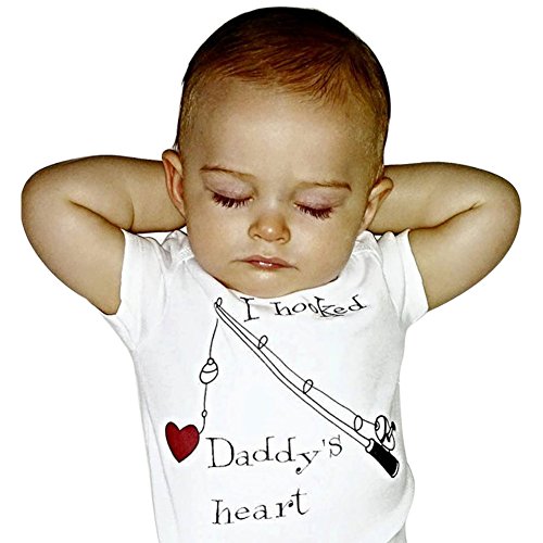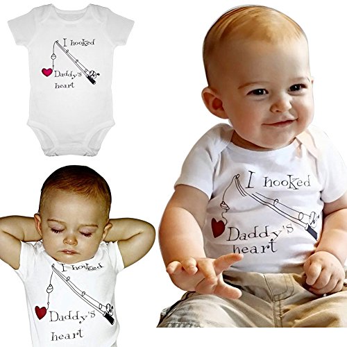 MIOIM ベビー服 ロンパース 新生児 女の子 男の子 ハート かわいい カバーオール ボディスーツ I hooked Daddy's Heart 英字柄 半袖 Tシャツ 出産祝い 肌着 子供服 キッズ