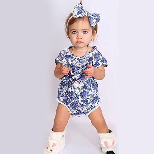 MIOIM ベビーロンパース 青花柄 キッズ ノースリーブシャツ 足つき カバーオール ボディスーツ 肌着 女の子 男の子 0~2歳