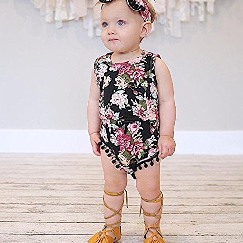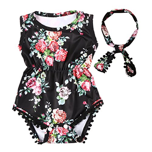 MIOIM ベビーロンパース ヘアバンド 2点セット 赤ちゃん キッズ 足つき カバーオール ボディスーツ 肌着 花柄 女の子 七五三 記念撮影 出産お祝い 0~2歳