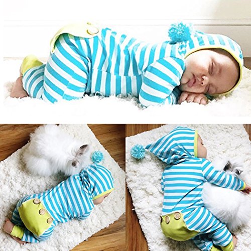 MIOIM かわいい ベビー服 長袖 赤ちゃん 肌着 カバーオール ストライプ ロンパース 男の子 女の子 出産祝い パーカー 帽子付き