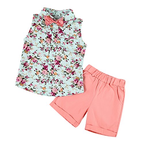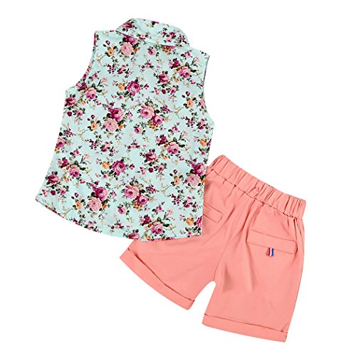MIOIM 子供服 花柄 上下セット キッズ 赤ちゃん タンクトップ ショートパンツ セットアップ かわいい おしゃれ ベビー服 女の子 男の子 春夏秋 ノースリーブシャツ 2~7歳