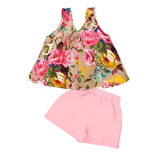 MIOIM 子供服 上下セット キッズ 赤ちゃん プリンセス 薄い 花柄 ノースリーブシャツ ショートパンツ セットアップ 女の子 おしゃれ タンクトップ ベビー服 1~7歳