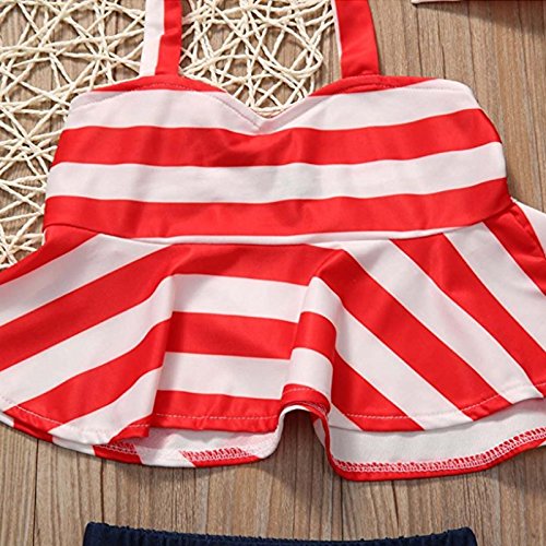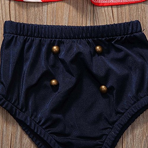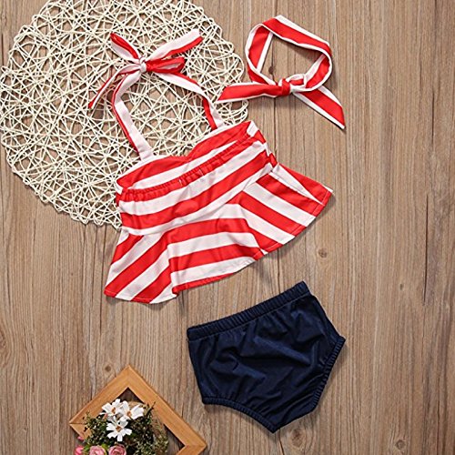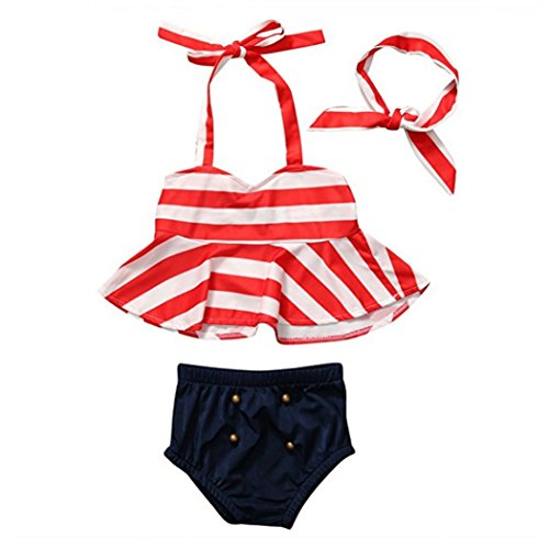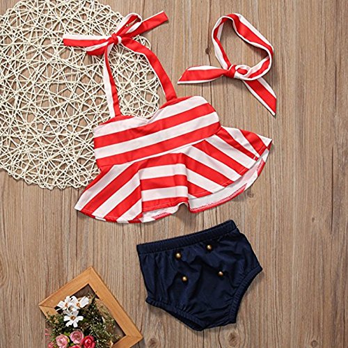 MIOIM ベビー服 上下3点セット キッズ ホルターネック タンクトップ パンツ ヘアバンド セットアップ ボディスーツ 海軍風 水玉 船錨柄 女の子 ビーチ 水着