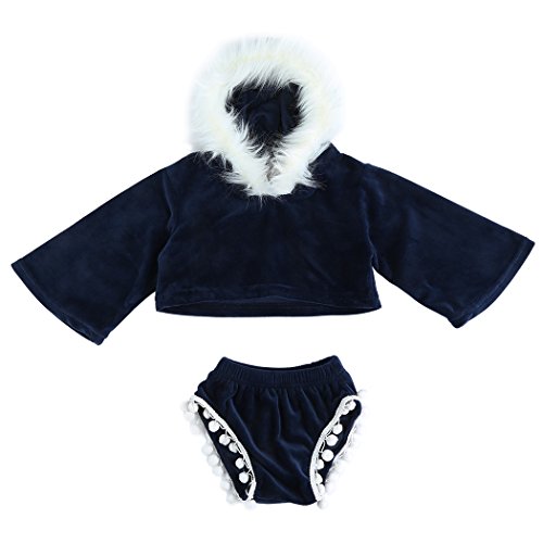 mioim 子供服 赤ちゃん ブルー ベビー服 フード フリンジ 靑い かわいい スーツ 長袖 ポンポン 金丝绒 ショートパンツ 男の子 女の子