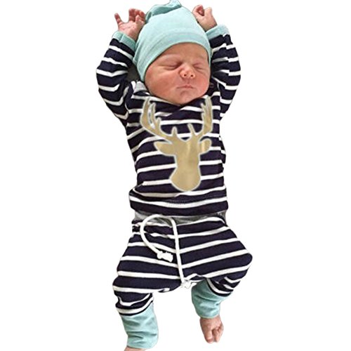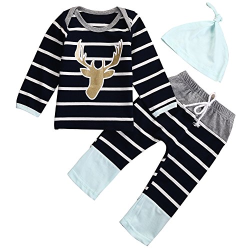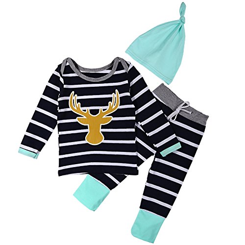 MIOIM® ハロウィン ベビー服 子供服 新生児 帽子*シャツとズボンの3点セット 横縞 鹿 プリント シャツ ロングパンツ 長袖 プレゼント